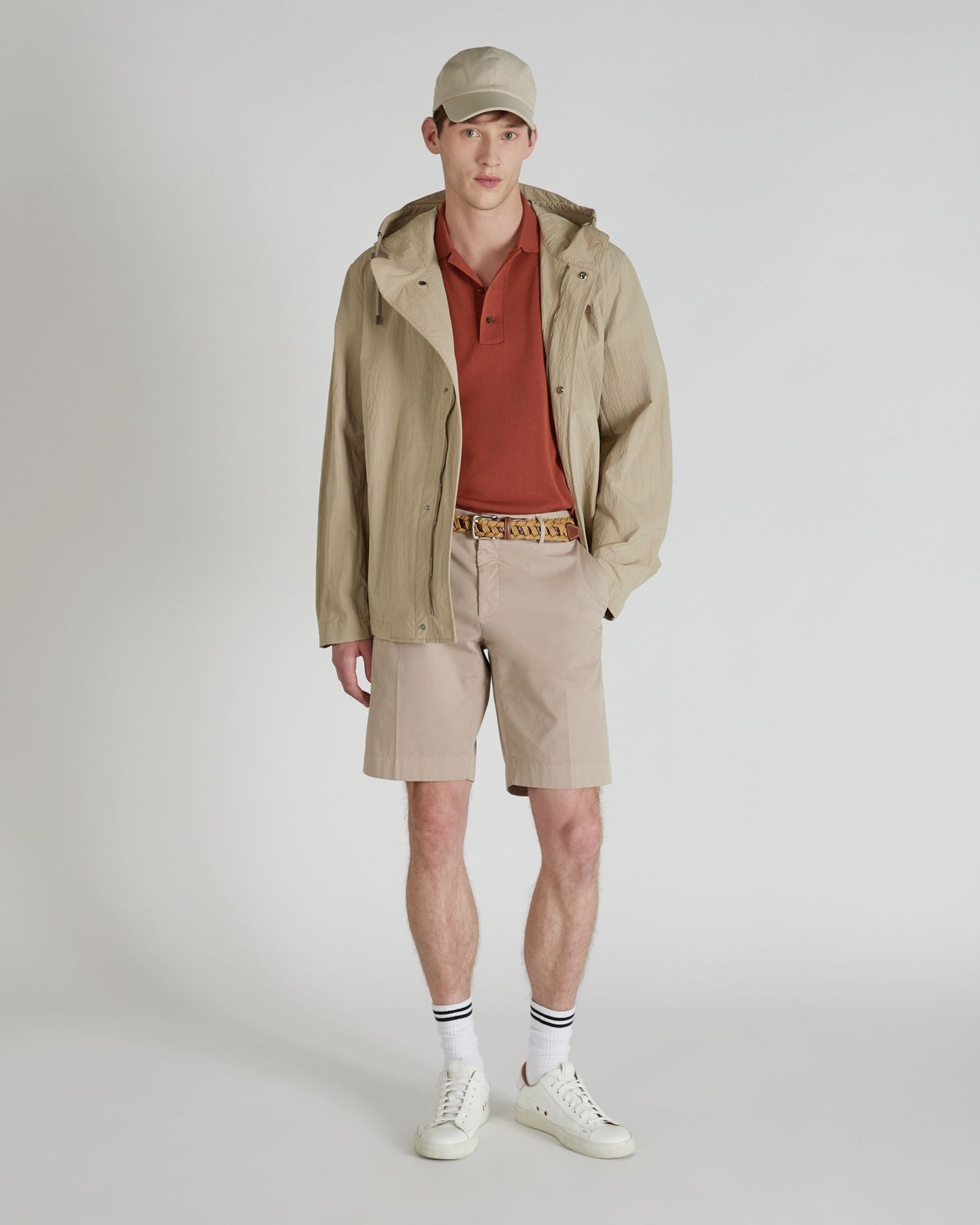 • The model is 1.80 m tall and is wearing a size 52.
