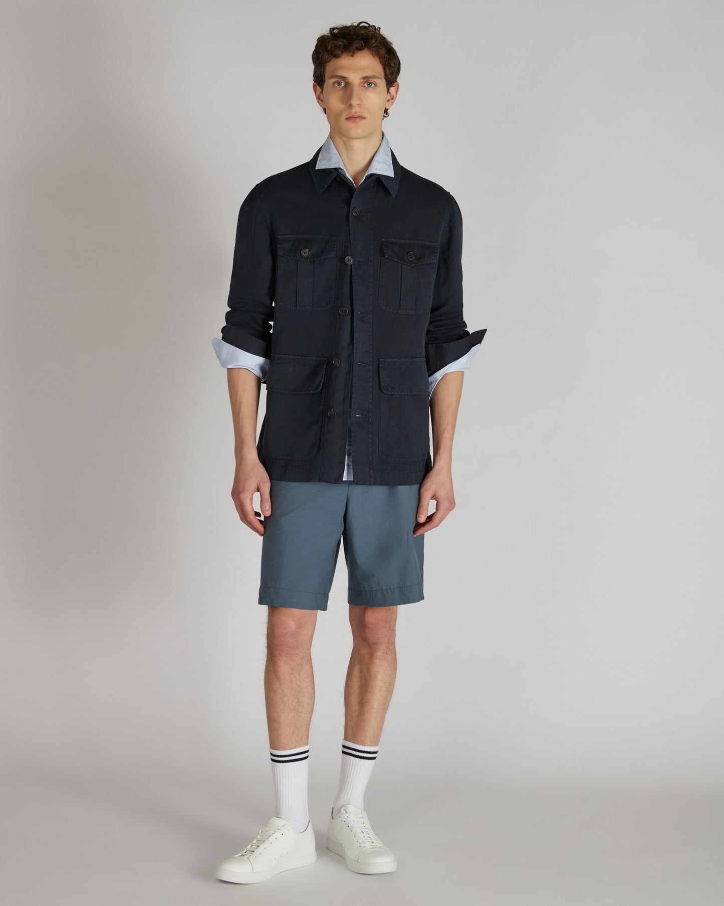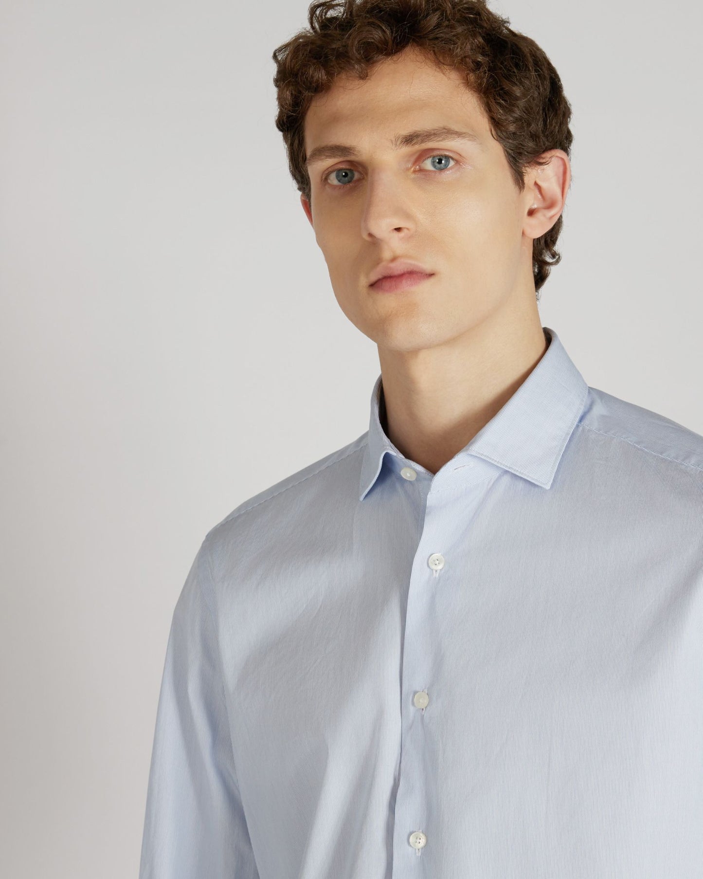 A refined shirt for the season, this garment combines the natural characteristics of cotton, which are particularly appreciated in the summer season, with a very narrow stick pattern that gives a touch of elegance to the combinations.