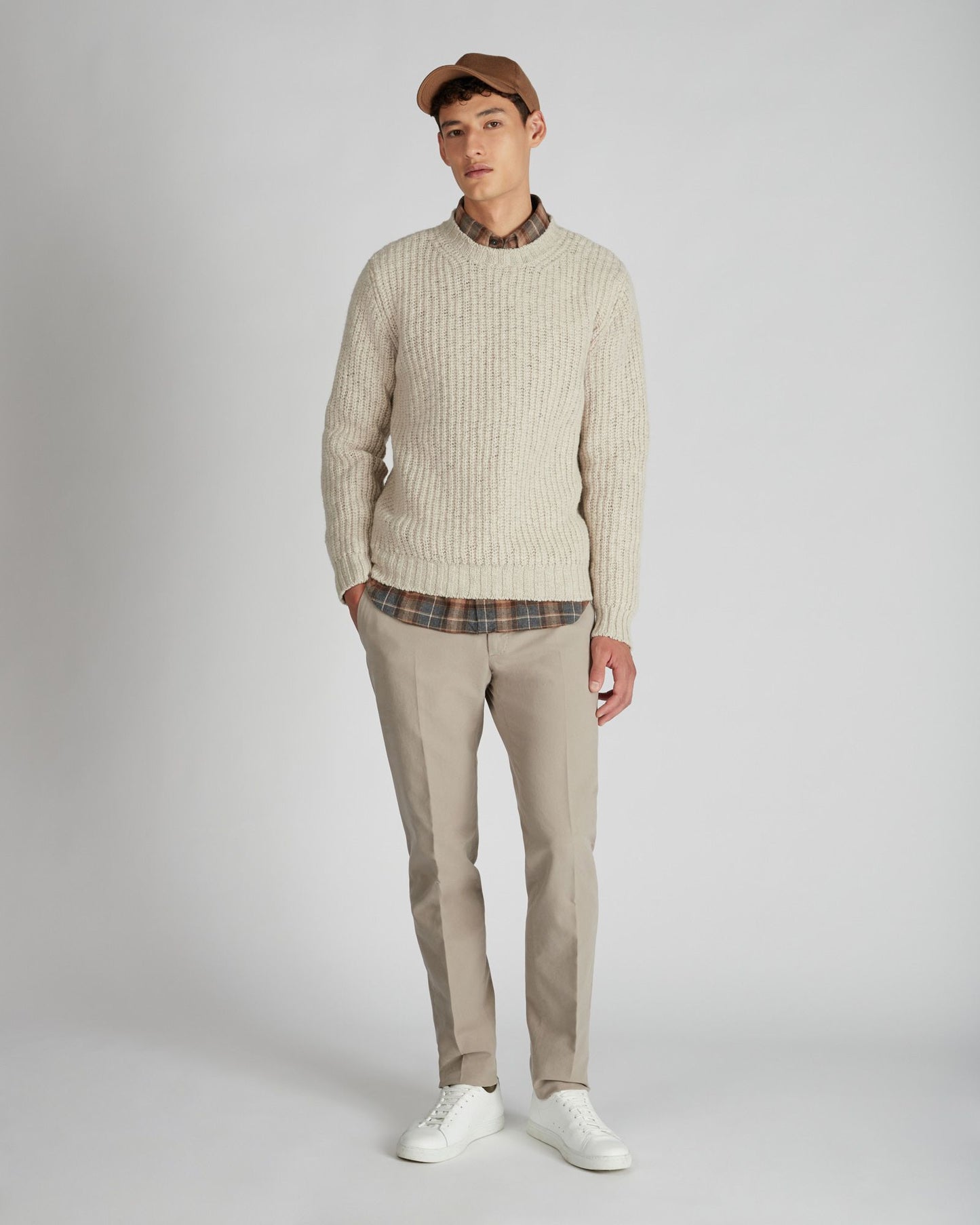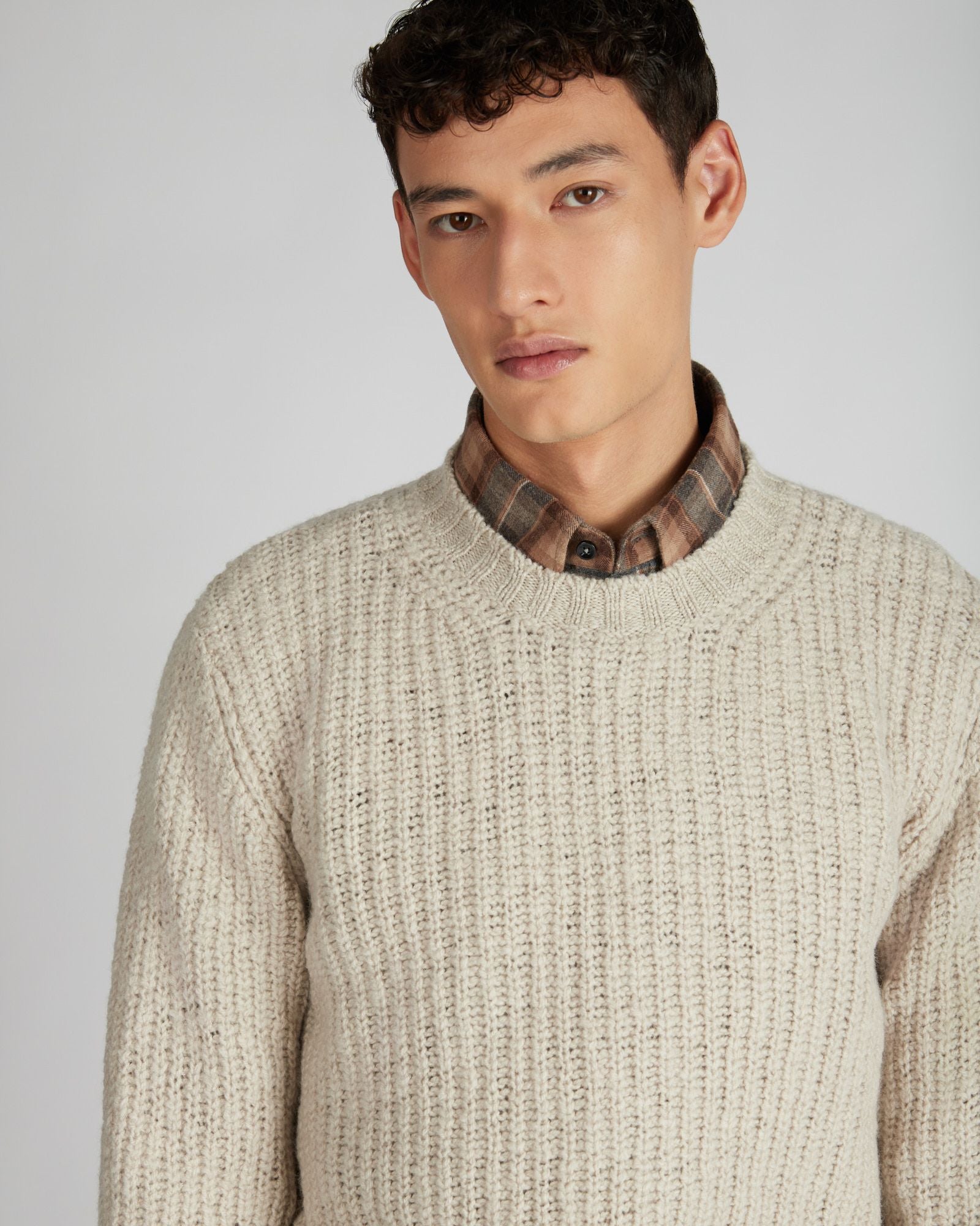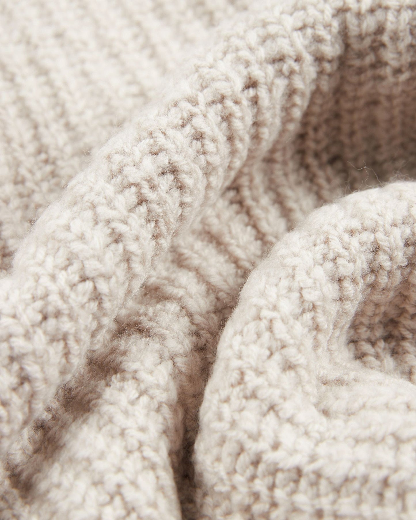 Imperfect by choice, precious and rich in quality. The malfilé yarn is created with a deliberately imperfect and uneven appearance, which simulates a raw, artisanal or natural processing. This iconic feature lends garments a natural, lived-in and authentic natural aesthetic. Here, it is crafted from high-quality wool, enhanced by certifications that guarantee the safety of people and the environment, while minimising the use of harmful chemicals throughout every stage of production. In addition, the yarn is mulesing-free certified, which ensures that animals are not subject to violent practices during the product's manufacturing process.