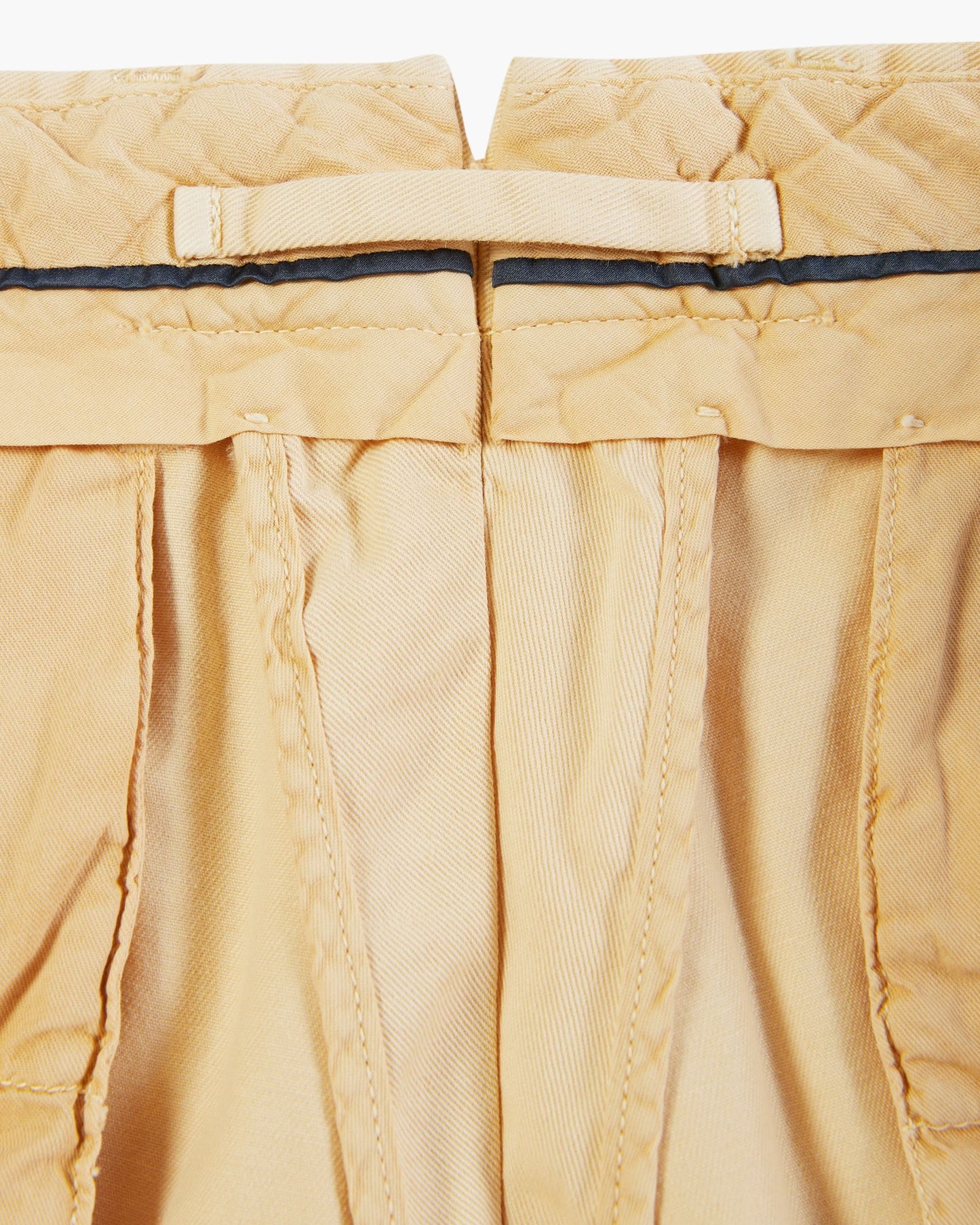 An expression of avant-garde and technical refinement, these trousers encapsulate the best of the brand's responsible range. The fabric used is an organic cotton that is produced through a certified process that ensures worker safety, respect for the environment and minimal use of harmful chemicals at all stages of production. In addition, the dyeing process is carried out through the use of natural powders, which are extracted from minerals and sediments. The model is a continuation in our range, a tapered fit characterised by clean lines and timeless style.