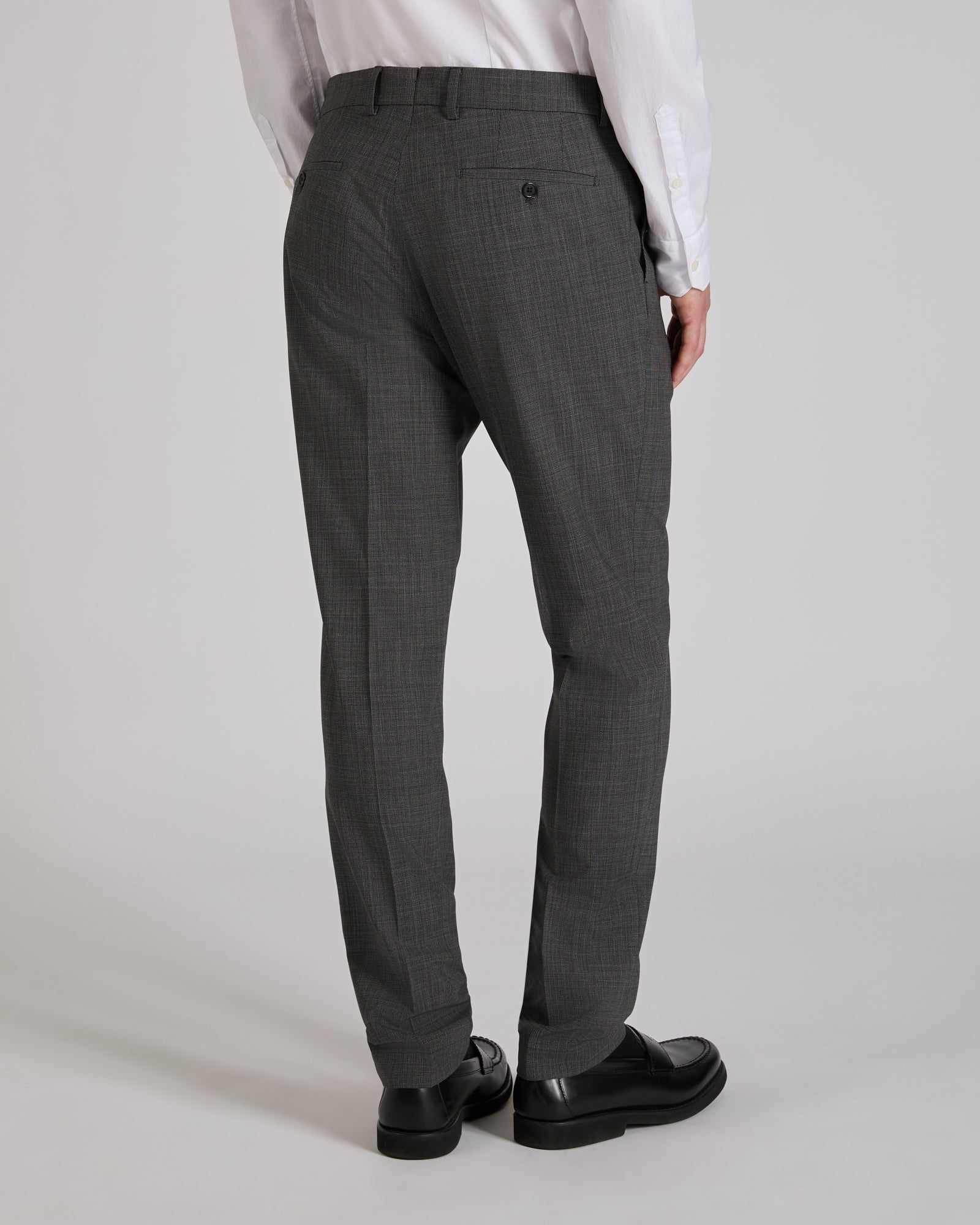 • The trousers feature a self-locking zip, belt extension with internal button, front slash pockets, coin pocket on the belt, and single-welt back pockets with button.