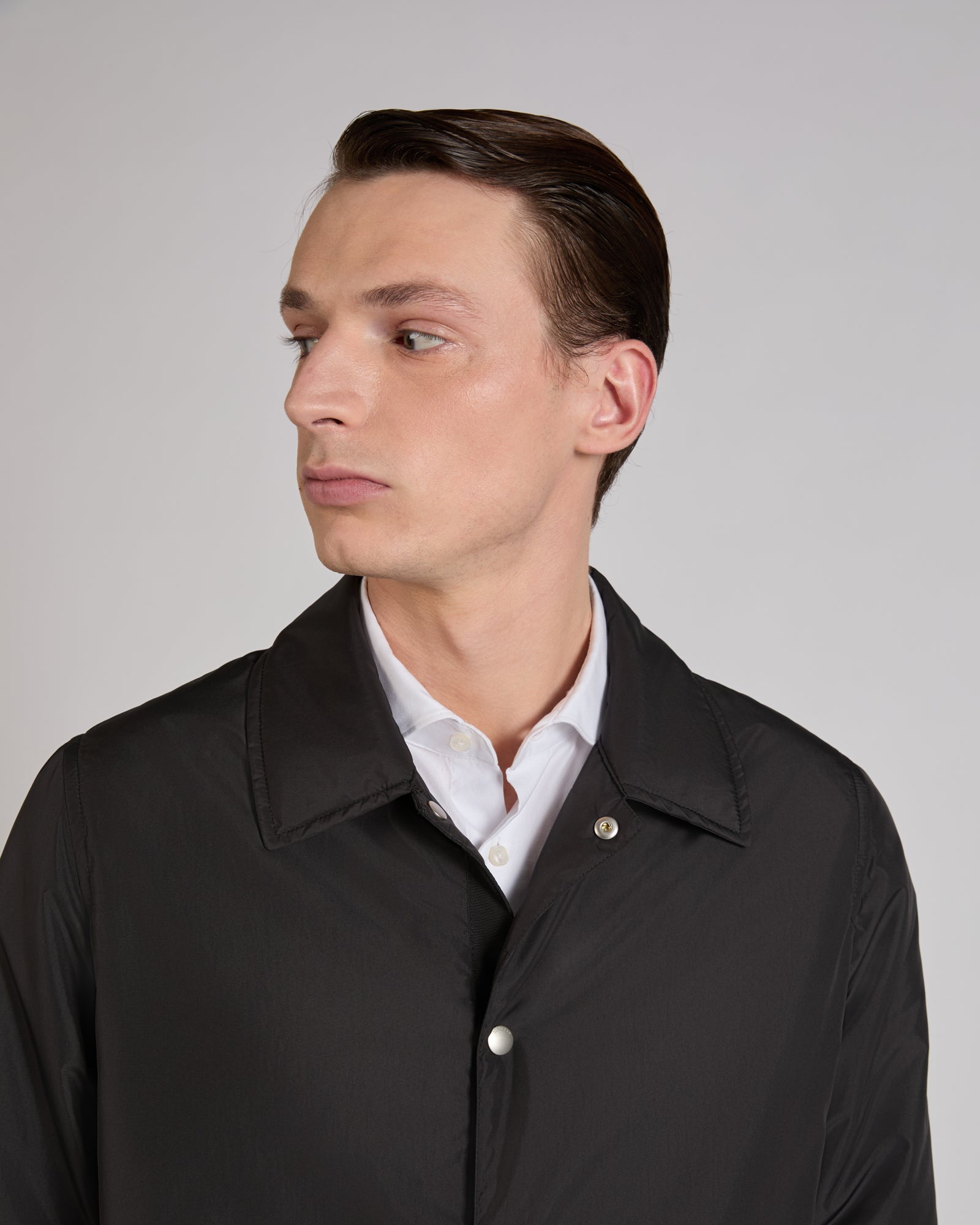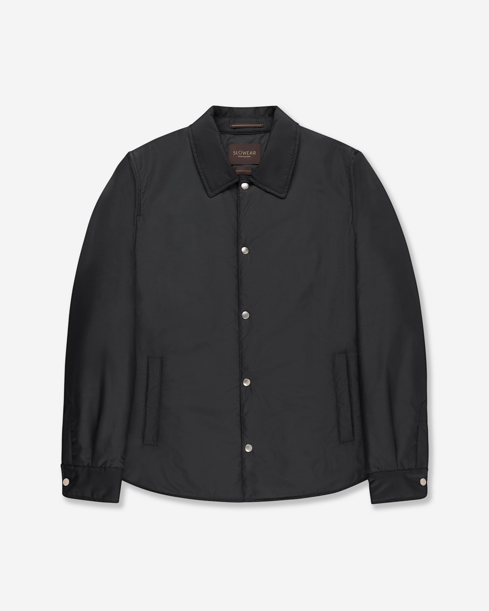 The Slowear Teknosartorial line represents the natural evolution of supreme tailoring skills combined with next-generation technical fabrics, drawn from sportswear and athletic wear. This lightweight, stylish outerwear garment is a prime example. The padded shirt is, in fact, the epitome of performance and sophistication. Its light wadding insulation, combined with the water-repellent outer fabric, ensures the perfect level of protection during the transitional seasons. All the brand's sartorial refinement can be seen in the details, such as the grosgrain reinforcement along the button placket and the certified fabric, produced through a process that ensures the safety of people and the environment at every stage of production.